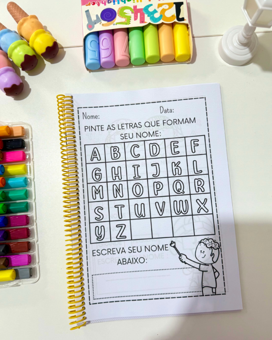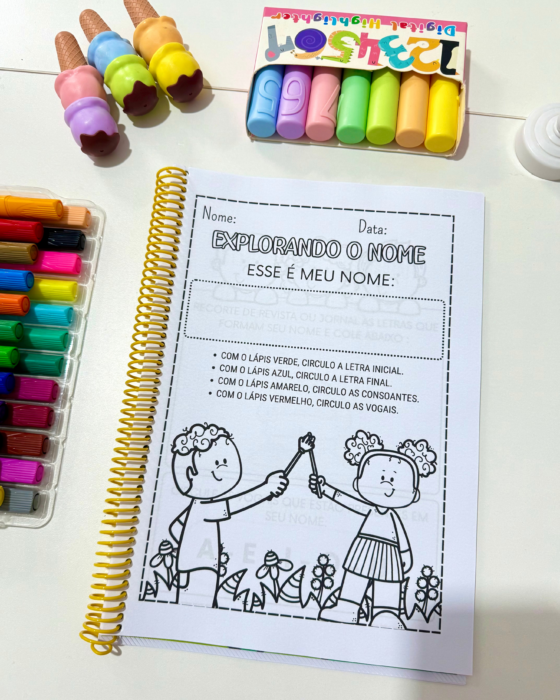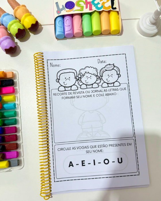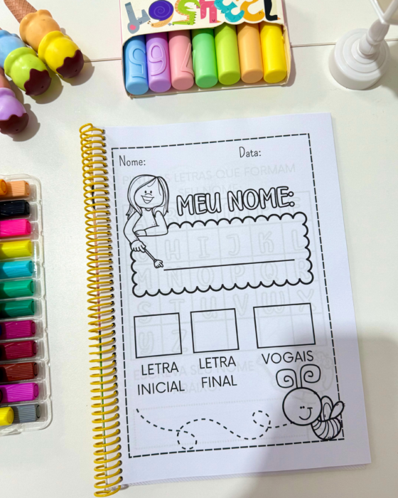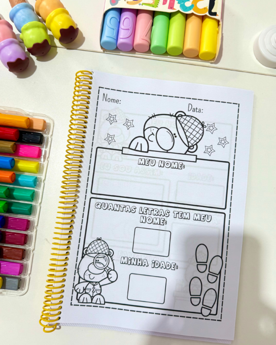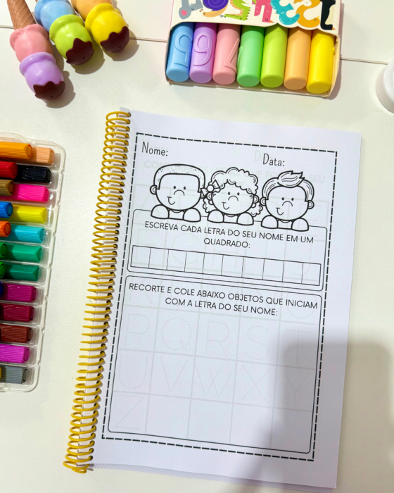 Material educativo com diversas propostas para trabalhar com turmas da Educação Infantil, auxiliando no reconhecimento e escrita do nome próprio de forma lúdica e interativa.