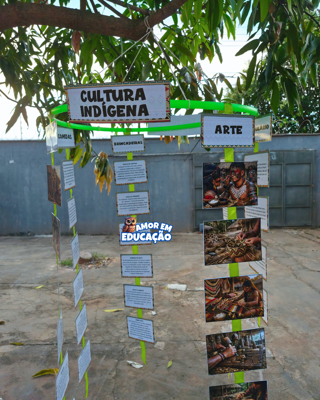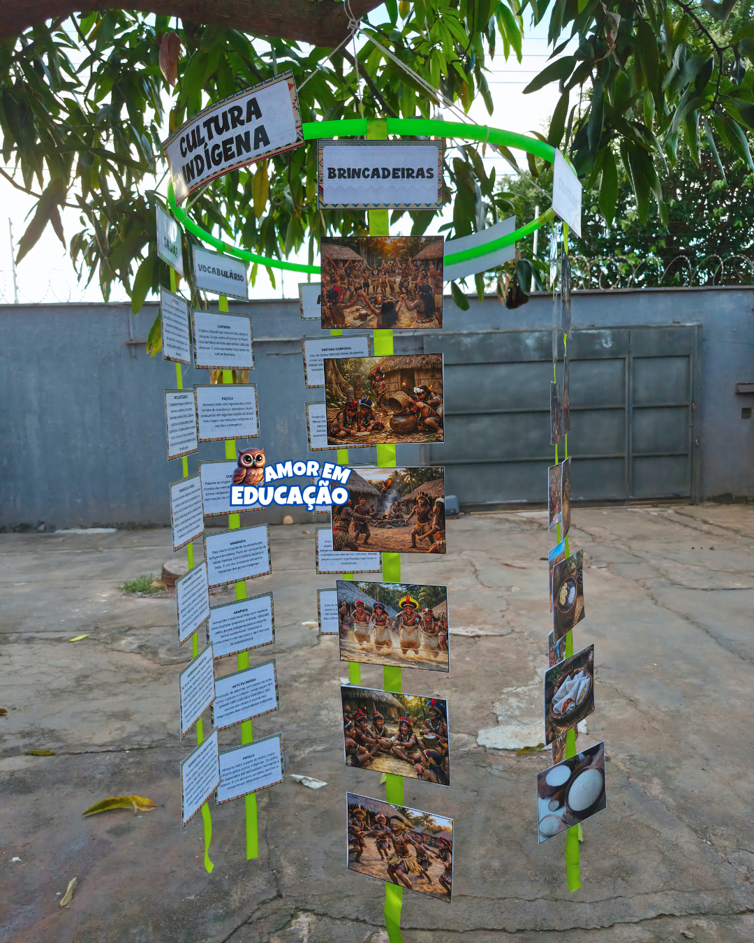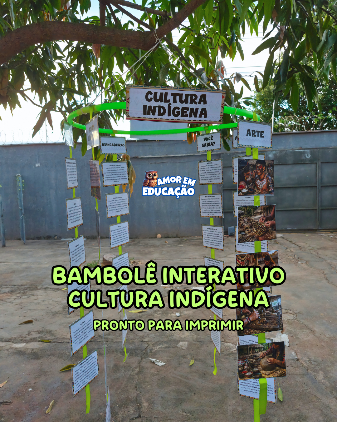 Transforme o ensino sobre cultura indígena em uma experiência visual, dinâmica e envolvente! O Bambolê Cultura Indígena Interativa é um material pedagógico completo, desenvolvido para apresentar conteúdos de forma criativa através de um painel suspenso (tipo móbile), ideal para exposições e atividades em sala de aula.