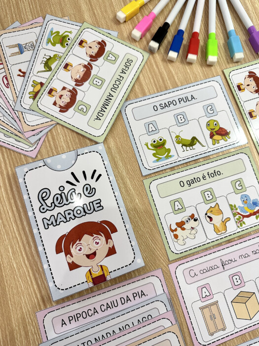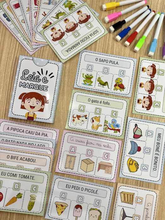O arquivo Leia e Marque contém 20 frases curtas e simples, ideais para crianças que estão começando a ler e precisam de apoio visual para desenvolver a compreensão leitora.