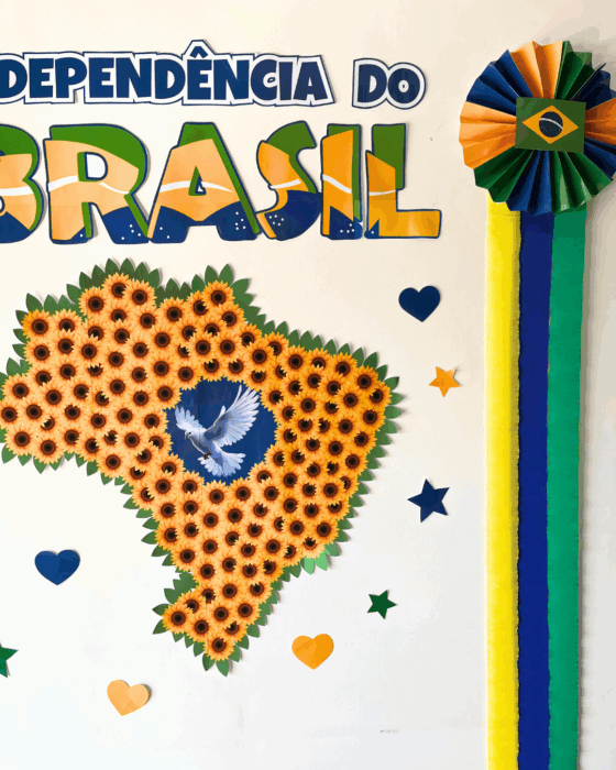 Ideal para decorar murais escolares, festas temáticas ou eventos cívicos, ele traz a bandeira, as cores nacionais e um mapa do Brasil formado por girassóis 🌻, símbolo de vida, esperança e união.