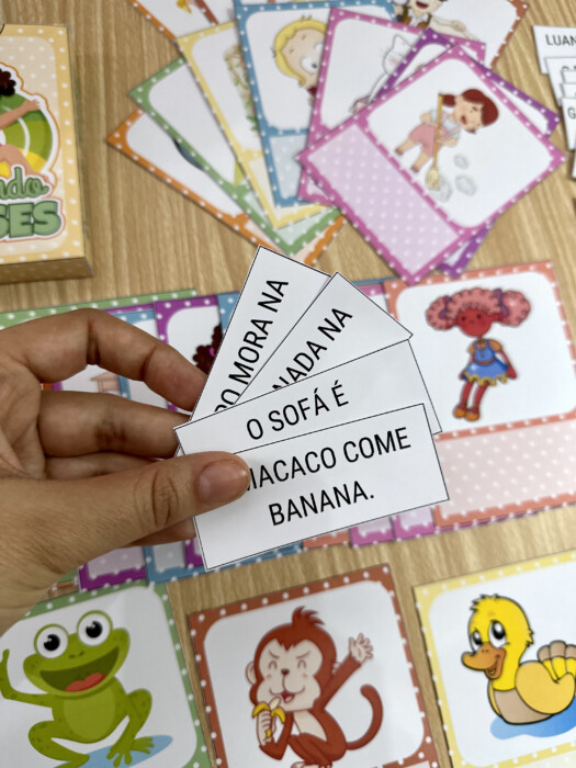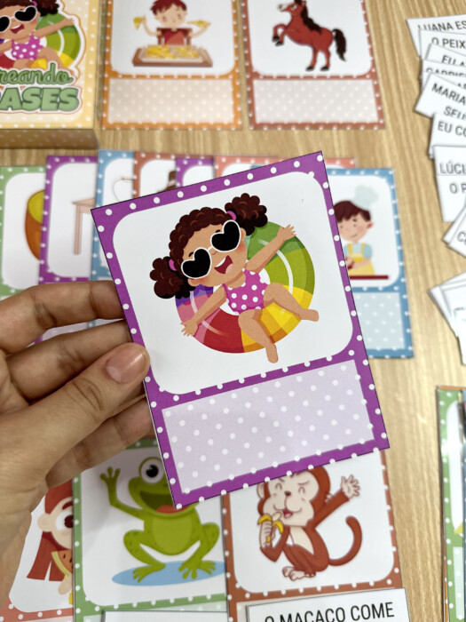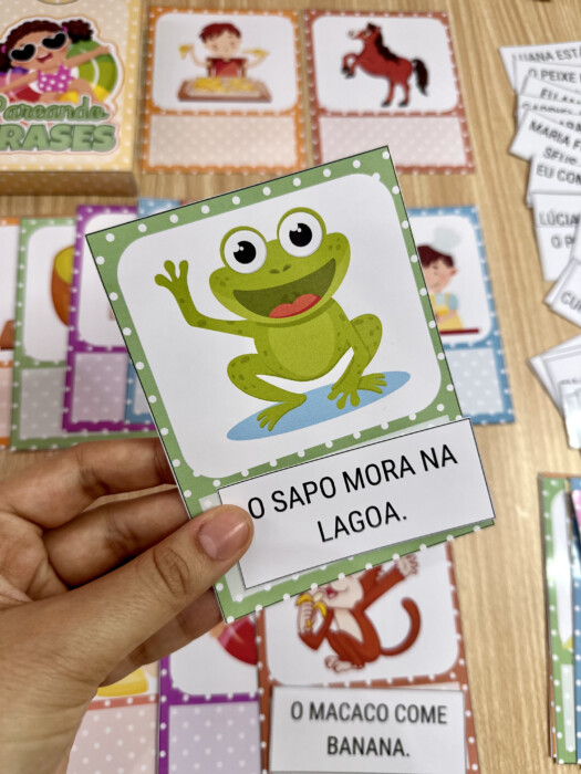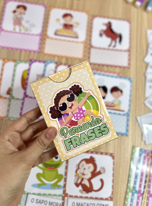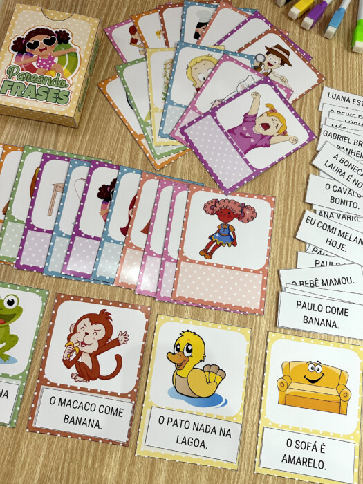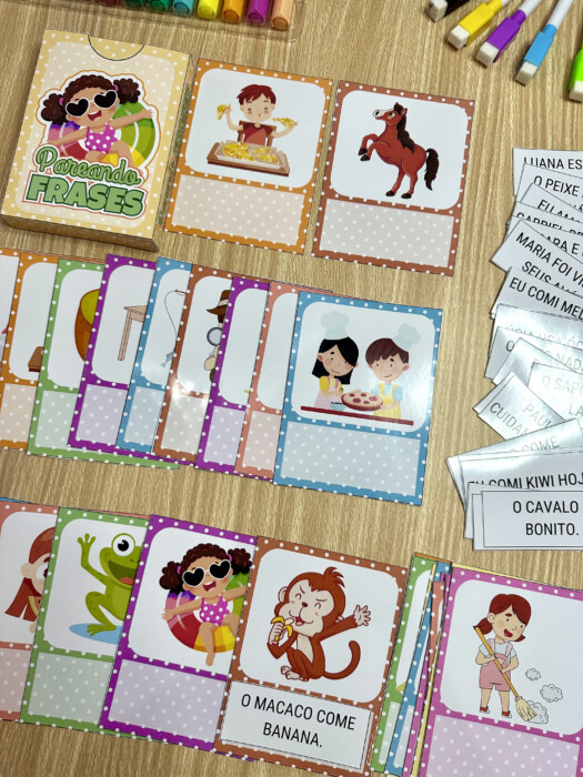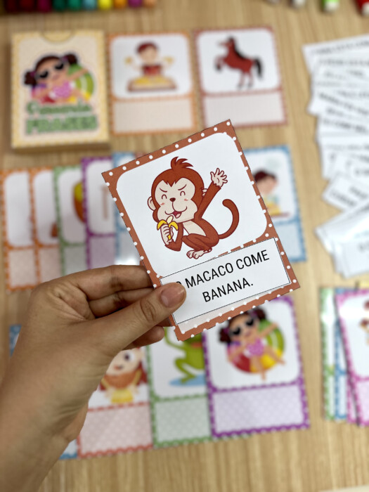O arquivo Pareando Frases contém 28 fichas de figuras e frases móveis para associação correta.