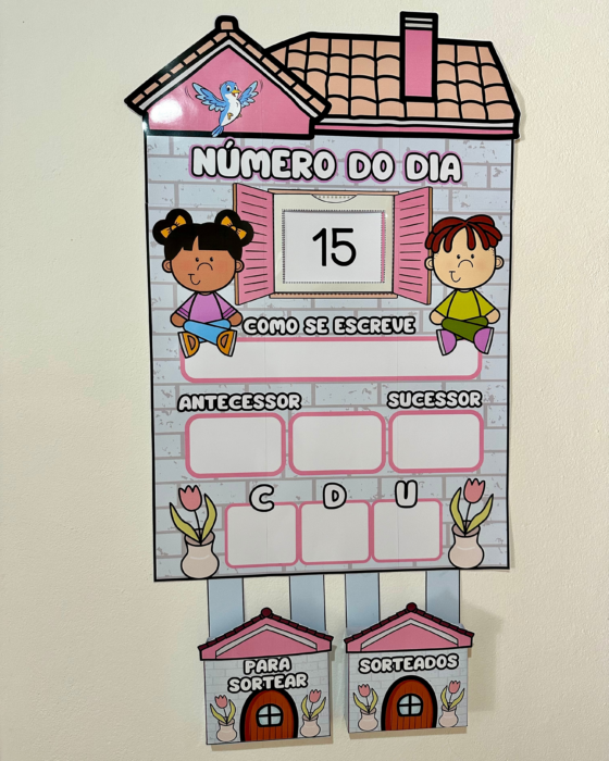 Estimula a compreensão numérica com bolsinhos organizadores e fichas móveis.